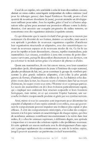 ment suffisant pour naître. Avec les reptiles, grâce à l’œuf et à d’autres adap-