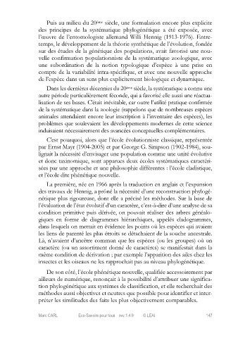 des travaux de Hennig, a prôné la nécessité d’une reconstruction phylogé-