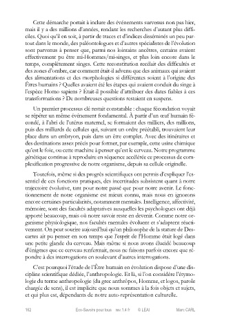 trajectoire évolutive, tant pour notre passé que pour notre avenir. Le fonc-