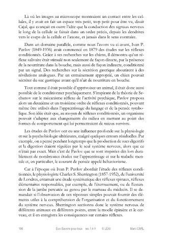 Car à l’époque où Ivan P. Pavlov abordait l’étude des réflexes condi-