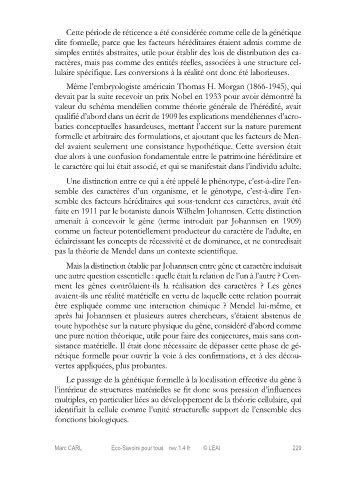 Mais la distinction établie par Johannsen entre gène et caractère induisait