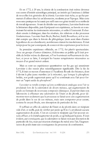 fondamentaux. Lavoisier lisait Boyle, Becher, Stahl, Booerhave, et il se ren-