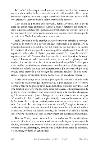 Mais Lavoisier a été le premier à avoir formulé un principe de conser-