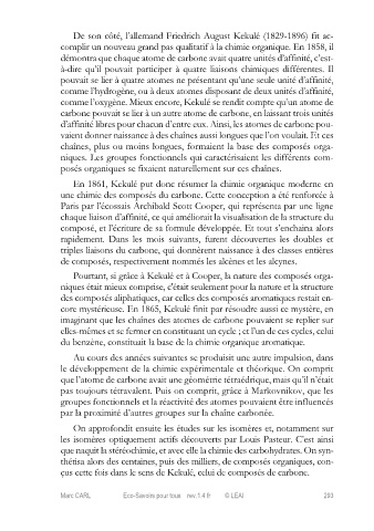 çus cette fois dans le sens de Kekulé, celui de composés de carbone.