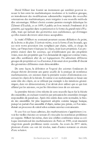 Éléments d’Euclide, et en 1899, il publia un livre intitulé Fondements de la