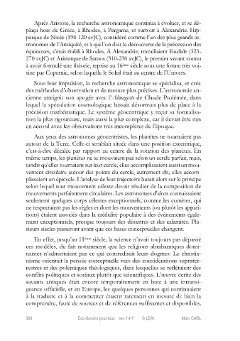 Après Aristote, la recherche astronomique continua à évoluer, et se dé-