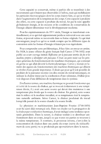 en germe ce qui allait devenir la thermodynamique. Carnot y mettait en lu-