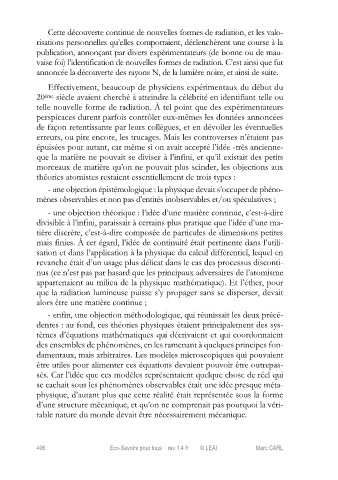 - une objection théorique : l’idée d’une matière continue, c’est-à-dire