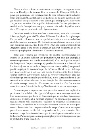 que les électrons qui tournaient autour du noyau occupaient des états sta-