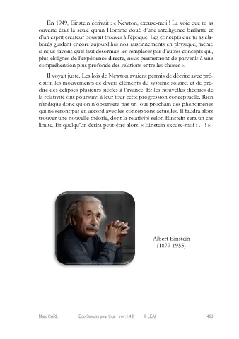 En 1949, Einstein écrivait : « Newton, excuse-moi ! La voie que tu as