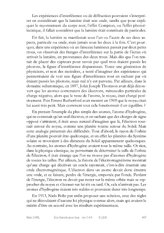 de l’énergie, l’électron ne devait pas rester sur la même orbite mais se rap-