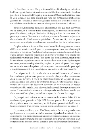 de la vie sur la Terre. Il s’agit de Stuart Kauffman, un logicien et biolo-