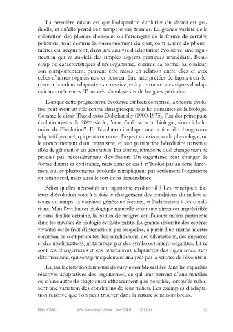 La première raison est que l’adaptation évolutive du vivant est gra-